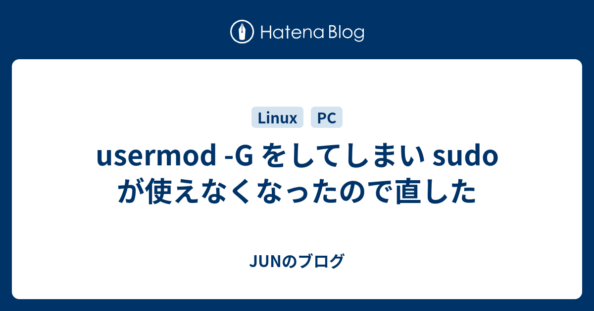 Usermod G をしてしまい Sudo が使えなくなったので直した Junのブログ